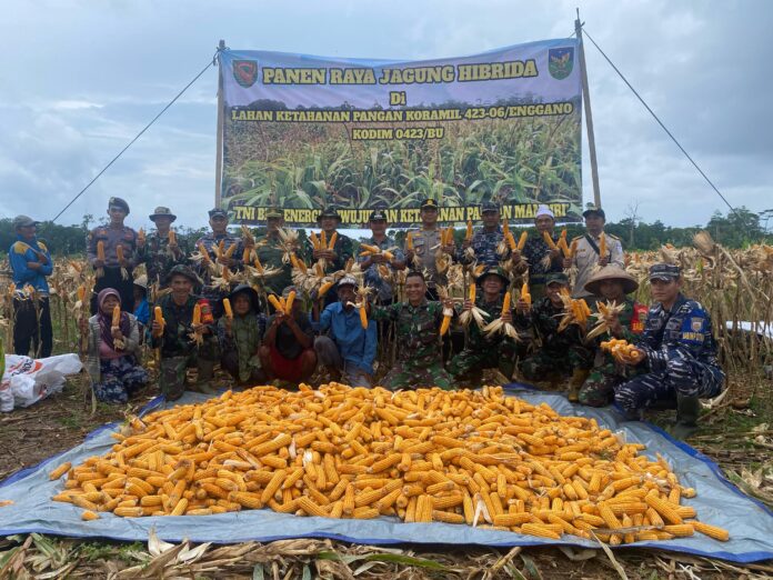 “Program Ketahanan Pangan yang dilaksanakan Koramil 423-06/Enggano Dim 0423 BU, dengan kegiatan Panen Raya Jagung Hibrida Dengan Tema ” TNI Bersirnergi Mewujudkan Ketahanan Pangan Mandiri”