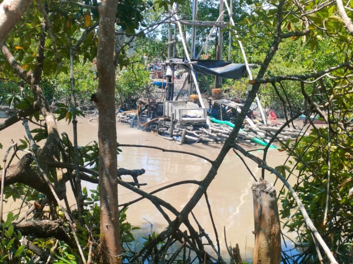 Aktivitas tambang timah diduga ilegal beroperasi diperbatasan Jalan laut dan kampung pasir, kelurahan kuday, kecamatan Sungailiat, kabupaten Bangka.
