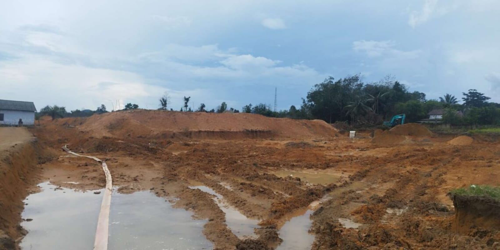 INFOOMBBSIBERINDONESIA.COM-Salah satu penambangan timah yang diduga ilegal berlokasi tidak jauh dari jalan raya Pangkalpinang Koba di dekat pemukiman warga di Desa Air Mesu Kecamatan Pangkalanbaru, (25/04/2024).