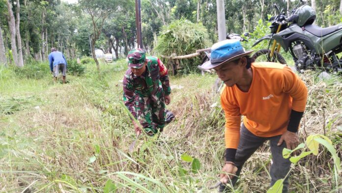 Bersama Warga, Babinsa Koramil 0808/10 Kademangan Kerja Bakti Pembersihan Parit