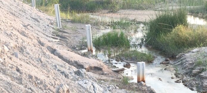 “Silahkan saksikan bagaimana kondisi di lapangan. Saya justru sebelumnya telah memasang pelastik polibax sepanjang sisi pok sisi aliran anak sungai ini sebagai antisipasi agar limbah tailing tak masuk ke lahan Yu,” terang An seraya menunjukan kondisi posisi atau letak bangunan pagar Yu yang roboh kepada tim media ini.