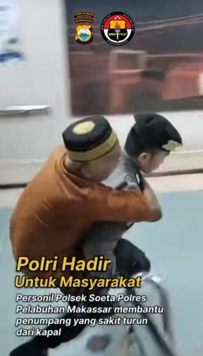 Infoombbsiberindonesiacom-HUMDER – Sebuah aksi kepedulian kembali ditunjukkan oleh abdi negara, Kali ini dari seorang anggota Polri yang bertugas di Pelabuhan Soekarno Hatta, Makassar. Bripka Herman, Salah satu personil yang bertugas dalam pengamanan didalam pelabuhan, menunjukkan sikap empati dan kepedulian terhadap masyarakat dengan membantu seorang penumpang yang mengalami kesulitan saat turun dari kapal.
