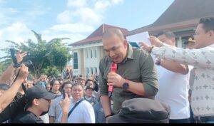 Aksi Demo di halaman Depan Kantor Bupati Bangka Dihadiri massa sekitar 1000 lebih berlangsung Damai.