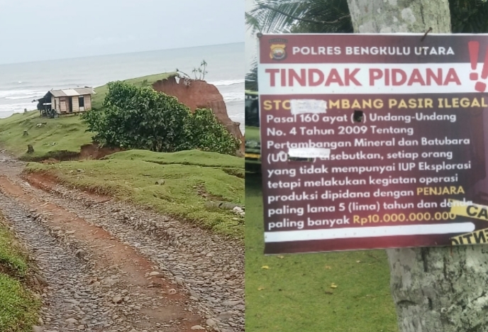 Seperti yang di ketahui, belum lama ini polres Bengkulu Utara sudah memasang papan peringatan di beberapa lokasi galian pasir pantai di kecamatan air Padang kabupaten bengkulu utara, akan tetapi aktivitas galian pasir pantai tersebut masih saja beroperasi hingga hari ini.