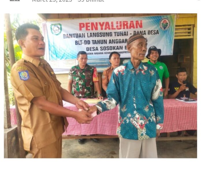 INFOOMBBSIBERINDONESIA.com-Kepahiang -Bengkulu Pada hari Senen 24 /3/ 2025  Desa sosokan baru kecamatan muara kemumu. kabupaten kepahiang, provinsi Bengkulu,  Musyawarah Desa  Khusus (Musdessus) guna menetapkan penerima Bantuan Langsung Tunai Dana Desa (BLT-DD) Tahun Anggaran 2025. Acara yang dihadiri langsung oleh bapak  camat muara kemumu kasi PMD babikatimas , kepala desa Nassutiyon perangkat Desa, Ketua badan Permusyawaratan Desa (BPD) beserta jajaran nya , kadus    Tokoh Masyarakat, Pengurus PKK , Acara tersebut di laksanakan di. balai desa sosokan baru , Upaya ini dilakukan sebagai implementasi dari UU Nomor 62 Tahun 2024 Pasal 14 Ayat 5 tentang Penggunaan Dana Desa (DD) Tahun Anggaran 2025.