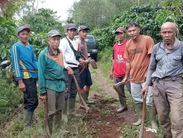 infoombbsiberIndonesia.com-kepahiang Dusun Air Les Atas dan Air Les Bawah, Kecamatan Muara Kemumu, Kabupaten Kepahiang, Melaksanakan Gotong – Royong Jalan Suwadayah Setiap Hari Minggu,. Kegiatan Gotong – Royong Yang Dilaksanakan Oleh Ketua Regu, Matamar Serta Anggota Lainnya Sangat Kompak Masyarakat Air Les.