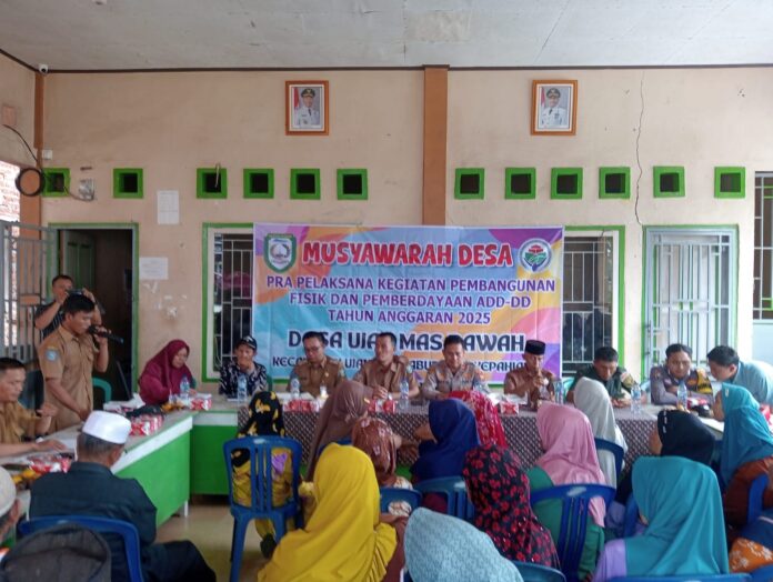 Dalam musyawarah ini, kades ,andi sunaryo menyampaikan “kegiatan yang akan kita laksanakan di tahun 2025 ini yang sangat diprioritas sesuai dengan hasil musyawarah desa yang telah kita laksanakan di tahun 2025 yang lalu, maka hal ini kita laksanakan sesuai apa yang telah di sepakati masarakat desa ujan mas bawah banguan yang akan di laksanakan sesuai dengan juklak-juklis yang sudah ditentukan, adapun bentuk fisik yang akan kita bangun di tahun 2025 ini berupa perangan pembangunan berapa titik terletak pekadus desa,ujan mas bawah Jenis Kegiatan tahanan pangan program, sumber dana (DD) tahun 2025 dan bangunan sumber dana( DD) yang terletak di kantor desa, dan ujan mas bawah dan kegiatan yang akan kita laksanakan di tahun 2025 ini yang berupa fisik,”pengadan teretak berapa kadus ujan mas bawah
