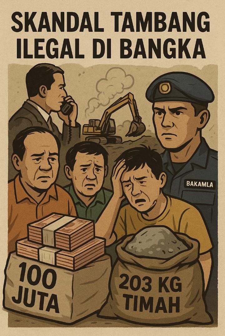 *Bangka* – Aroma busuk dugaan permainan aparat dan pejabat kembali menyeruak dari balik penindakan tambang timah ilegal di perairan dekat Muara Jelitik, Sungailiat, Kabupaten Bangka. Tiga orang warga yang diamankan tim Badan Keamanan Laut (Bakamla) Babel pada Sabtu (13/9/2025) malam lalu, kini menjadi buah bibir lantaran kasusnya berujung pada drama “uang damai” dan lobi-lobi gelap di balik layar. Selasa (23/9/2025).