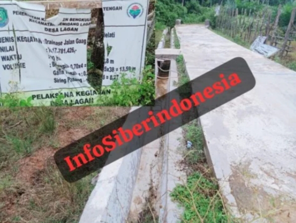 Infoombbombbsiberindonesia.com-Bengkulu Tengah, 2 Oktober 2025 – Baru selesai dikerjakan Proyek Kegiatan Pembangunan di desa Lagan kecamatan Semidang Lagan Kabupaten Bengkulu Tengah yang menggunakan dana desa pada tahun anggaran 2025 terindikasi duga’an kurangnya pengawasan sehingga mutu kualitas bangunan dipertanyakan.