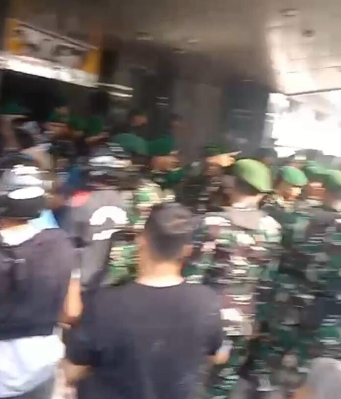 Situasi baru mulai mereda setelah aparat TNI melakukan tindakan persuasif dan peringatan agar massa mundur.