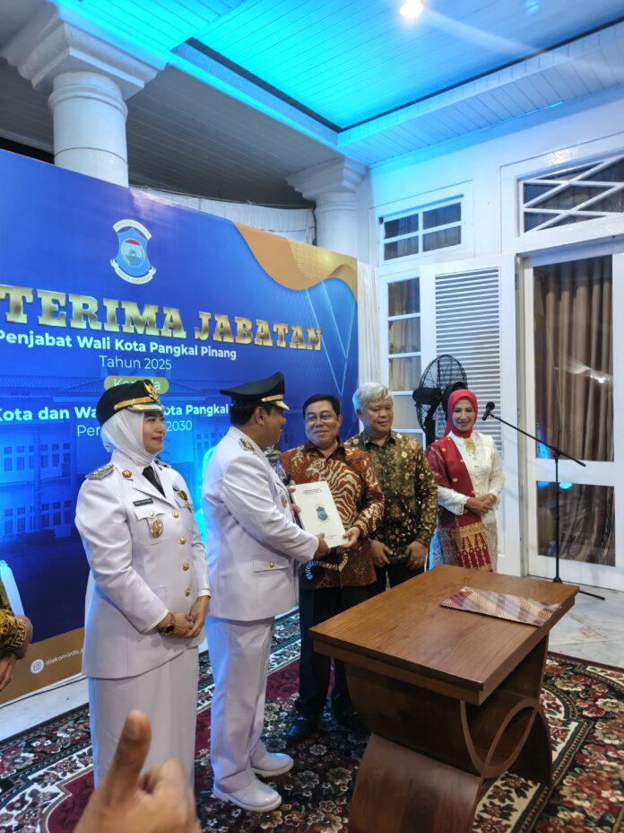 PANGKALPINANG, — Acara serah terima jabatan dan ramah tamah Wali Kota dan Wakil Wali Kota Pangkalpinang, Prof Saparudin-Dessy Ayutrisna, di Rumah Dinas Wali Kota Pangkalpinang, Rabu (15/10/2025) malam, berlangsung penuh kegembiraan.