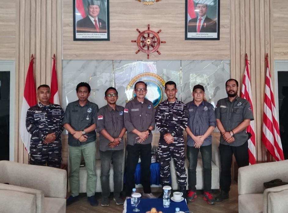 Rombongan PJS Babel yang dipimpin langsung oleh Ketua DPD, *Rikky Fermana*, didampingi *Abdul Hamid*, *Mung Harsanto*, *Wenki* (Wakil Ketua), serta *Sandy Batman* (Koordinator Divisi), disambut hangat oleh *Komandan Lanal Bangka Belitung, Kolonel Laut (P) Ipul Saepul, S.E., M.Tr.Opsla*, di ruang lobi tamu Mako Lanal Babel, Jumat (17/10/2025).