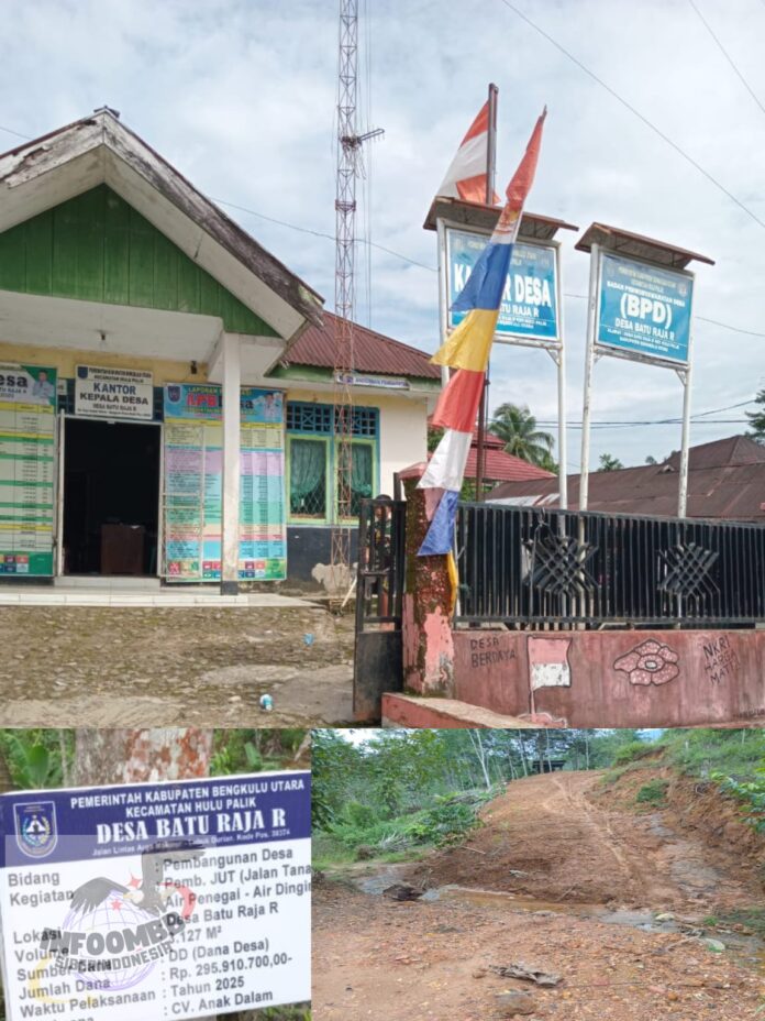 Infoombbsiberindonesia.com Bengkulu Utara – 28/10/25 ,Pembangunan jalan usaha tani (jalan tanah) air penegai – air dingin desa Batu Raja R, kecamatan hulu palik, kabupaten Bengkulu Utara yang di angarkan melalui Dana desa (DD) tahun 2025 diduga menjadi tempat ajang korupsi oknum kepala desa.