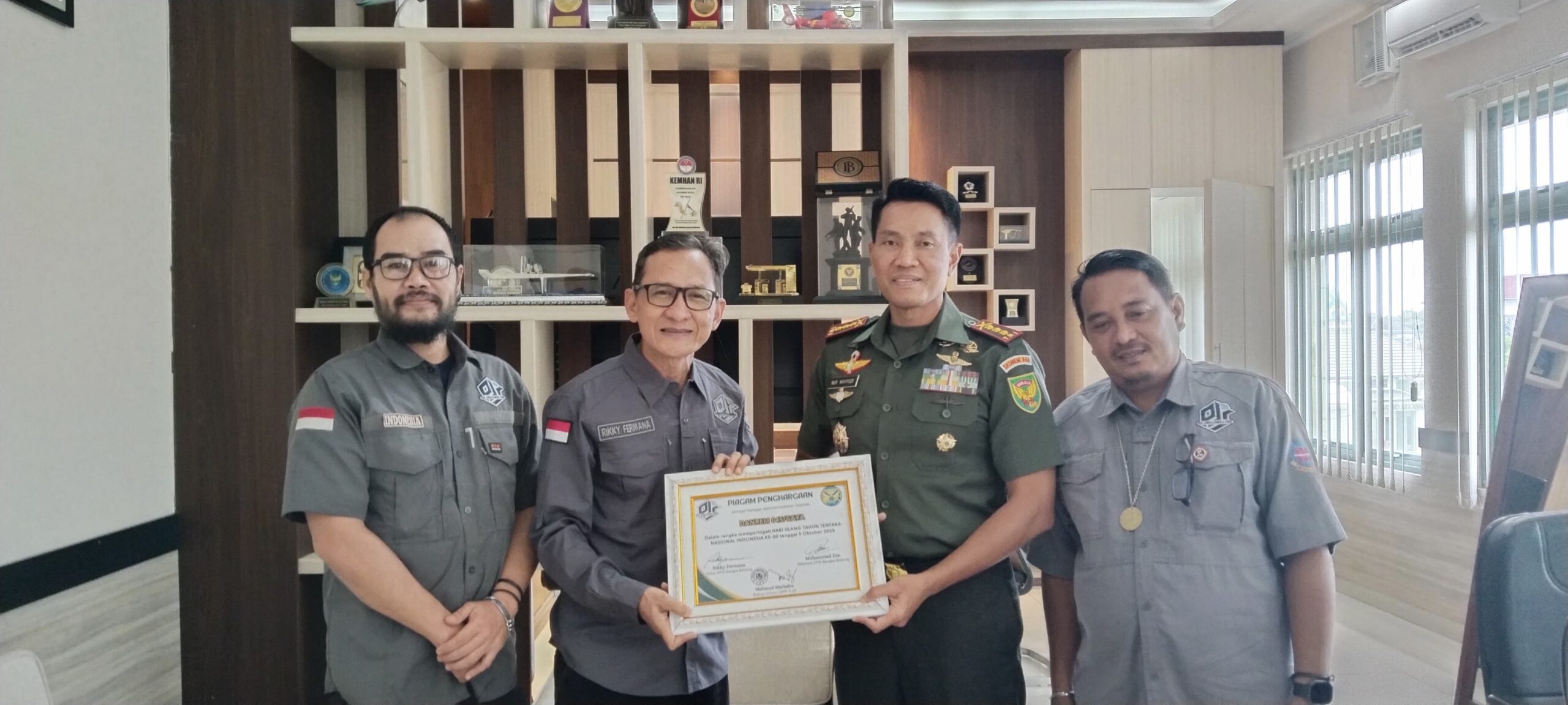 PANGKALPINANG — Dalam suasana penuh keakraban dan semangat kebersamaan, jajaran pengurus Pro Jurnalismedia Siber (PJS) Provinsi Kepulauan Bangka Belitung melakukan kunjungan silaturahmi sekaligus menyerahkan Piagam Penghargaan HUT TNI ke-80 kepada Komando Resor Militer (Korem) 045/Garuda Jaya, Selasa (28/10/2025).
