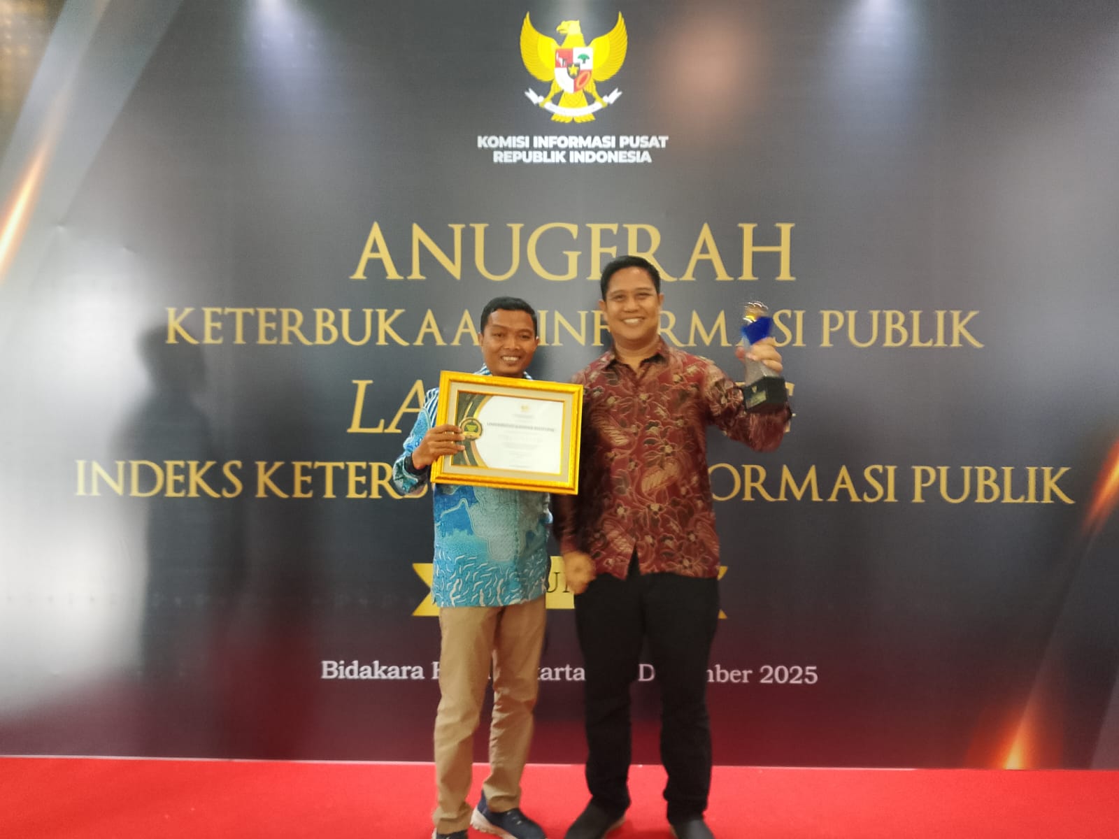Keduanya menerima *Anugerah Keterbukaan Informasi Publik sekaligus Launching Indeks Keterbukaan Informasi Publik (IKIP) Tahun 2025*, sebagai bentuk apresiasi atas kepatuhan dan komitmen dalam mengimplementasikan Undang-Undang Nomor 14 Tahun 2008 tentang Keterbukaan Informasi Publik.