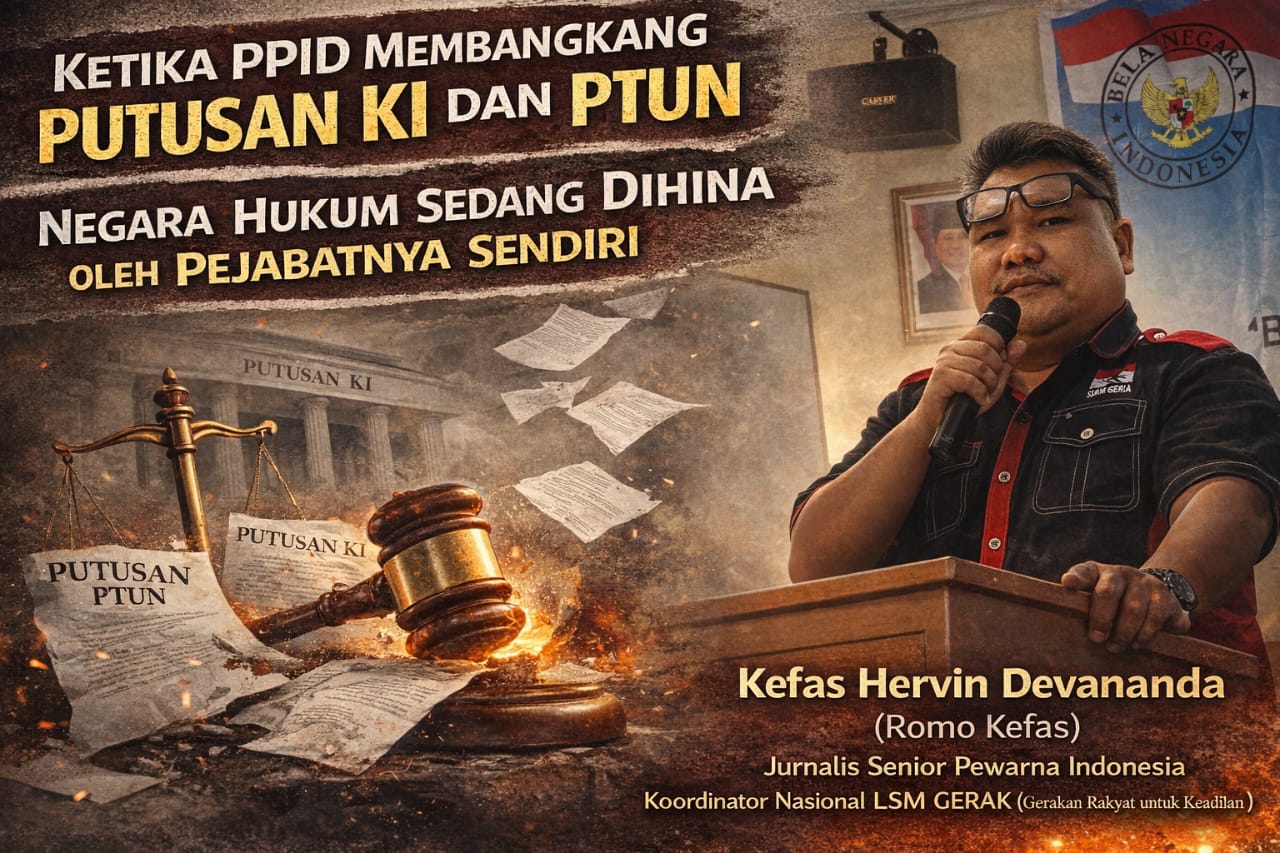 Ada satu ironi paling memalukan dalam negara yang mengaku demokratis dan menjunjung supremasi hukum: putusan hukum dihormati dalam pidato, tetapi diinjak dalam praktik. Di ruang sidang, hukum dimuliakan. Di balik meja birokrasi, hukum dipermainkan. Ketika Komisi Informasi dan Pengadilan Tata Usaha Negara telah memutus, namun Pejabat Pengelola Informasi dan Dokumentasi (PPID) memilih bungkam dan membangkang, sesungguhnya yang sedang dipertontonkan kepada publik adalah wajah asli kekuasaan yang anti-transparansi dan alergi akuntabilitas.