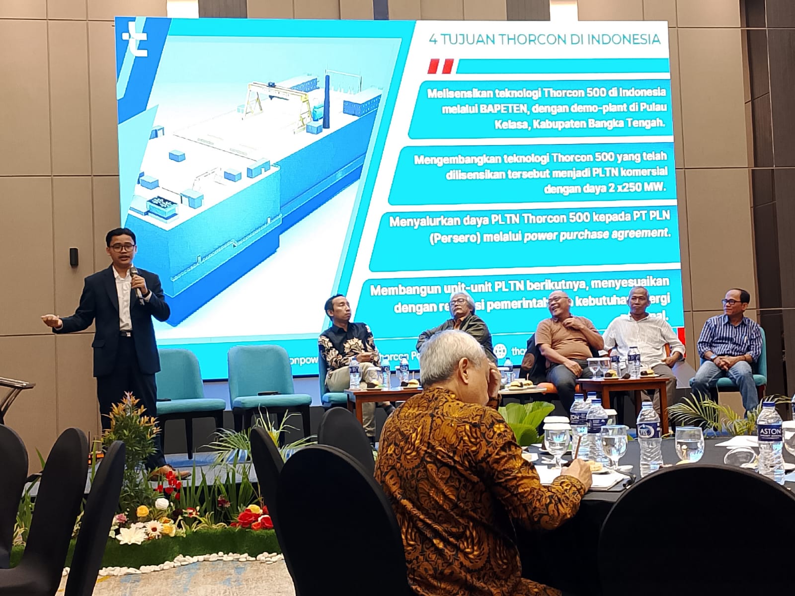 “Thorcon tidak datang untuk langsung membangun PLTN komersial. Fokus utama kami adalah melisensikan teknologi reaktor kami di Indonesia,” ujar Andri di hadapan peserta diskusi yang terdiri dari akademisi, jurnalis, mahasiswa, hingga perwakilan masyarakat sipil.