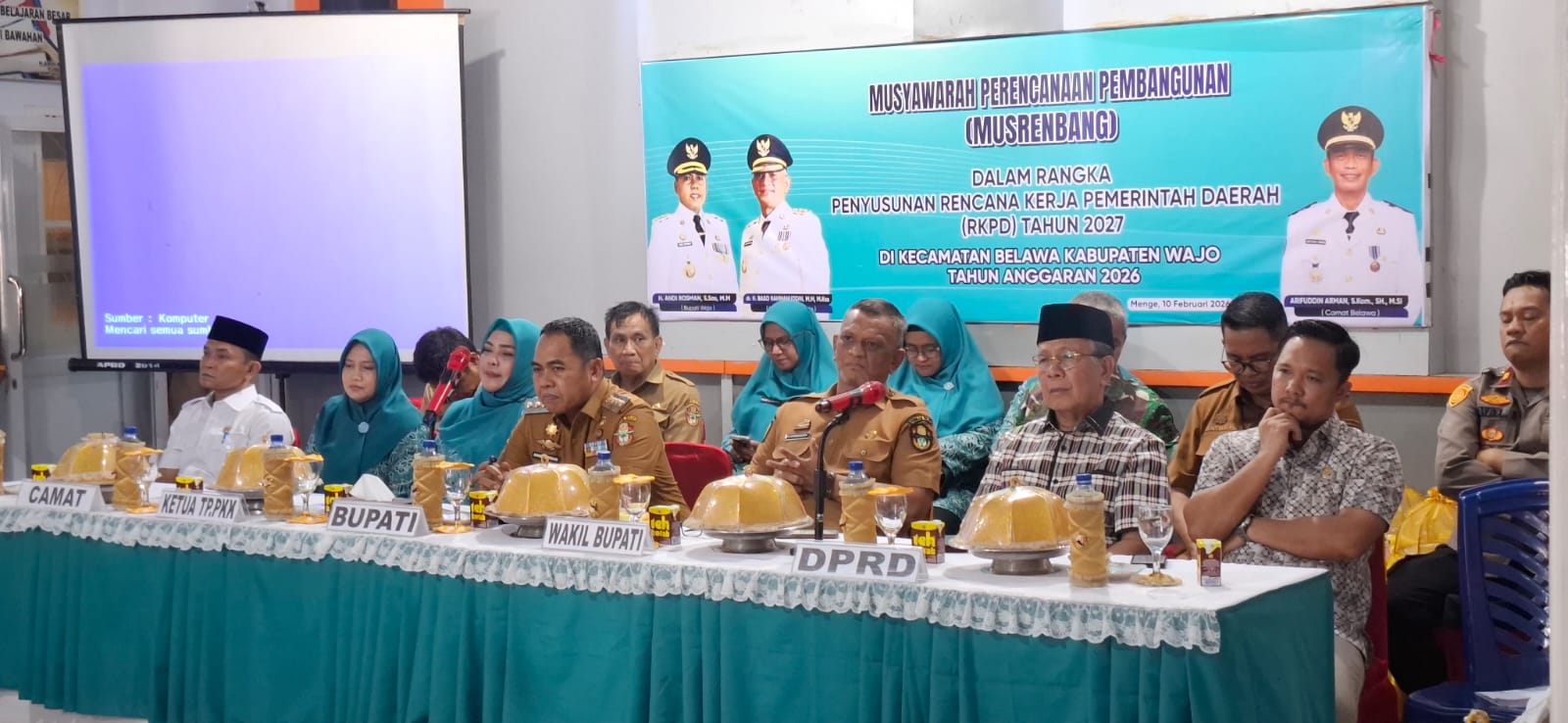 Musrenbang yang dibuka langsung Bupati Wajo, Andi Rosman, turut dihadiri Wakil Bupati Wajo dr. Baso Rahmanuddin, jajaran kepala OPD, Camat Belawa, unsur Forkopincam, para kepala desa, serta tokoh masyarakat. Forum tersebut menjadi ruang strategis dalam merumuskan skala prioritas pembangunan tahun mendatang.