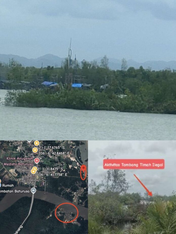 Bangka – Aktivitas pertambangan timah ilegal kembali mencuat dan menjadi sorotan publik di wilayah Desa Baturusa, Kecamatan Merawang. Kegiatan ilegal tersebut dinilai semakin berani karena dilakukan secara terbuka dan nyaris tanpa hambatan.