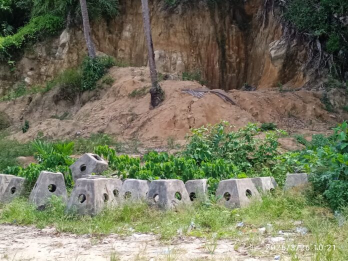 Di sisi lain, indikasi lemahnya pelaksanaan reklamasi terlihat dari keberadaan rumpon beton yang justru terbengkalai di daratan, tidak jauh dari Pantai Pasir Kuning. Struktur yang seharusnya berfungsi sebagai habitat buatan bagi ikan itu tidak pernah dipasang di laut.